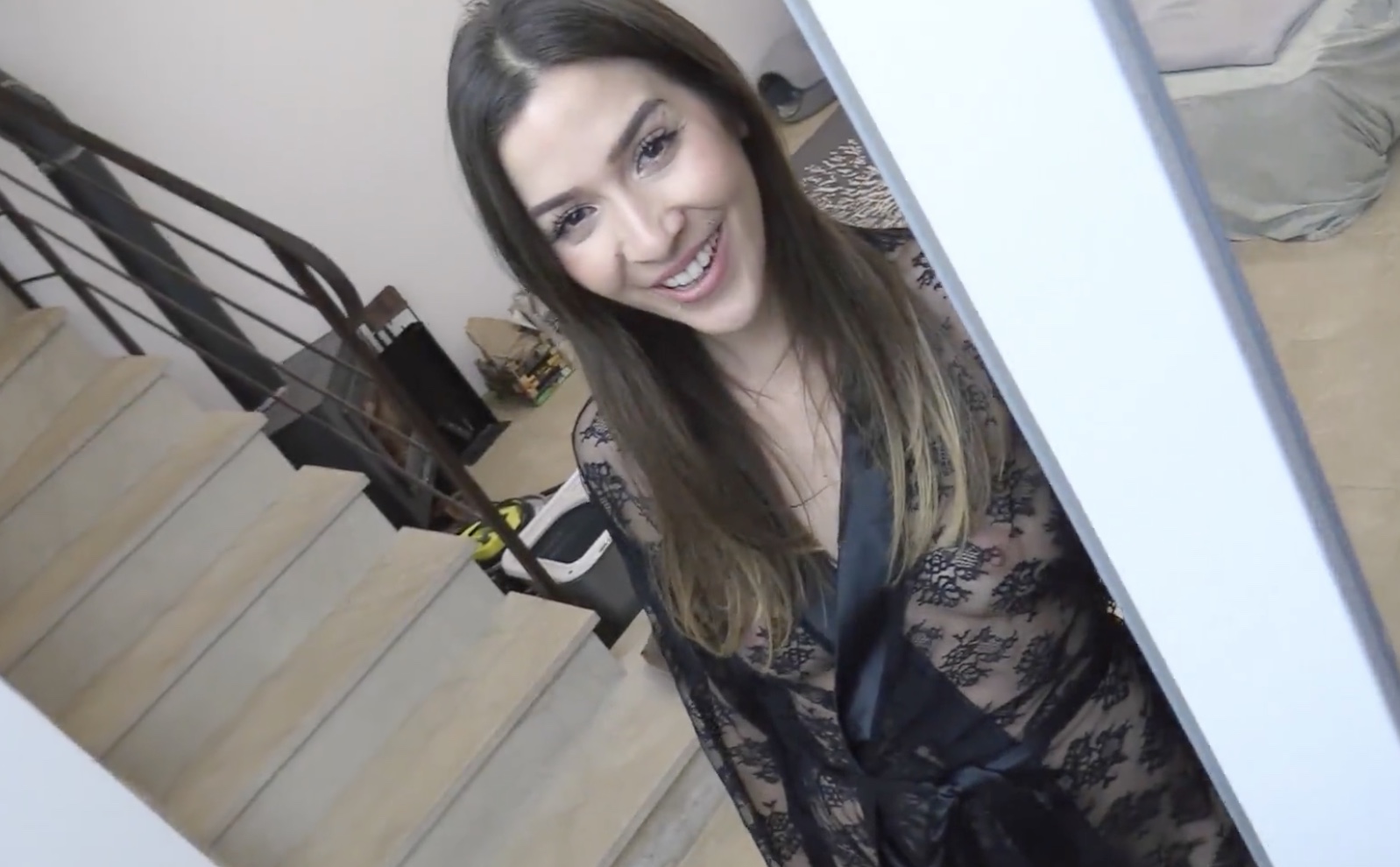 Пока муж не дома, чувак заходит к чужой женушки на хату и трахается с ней в своё удовольствие.