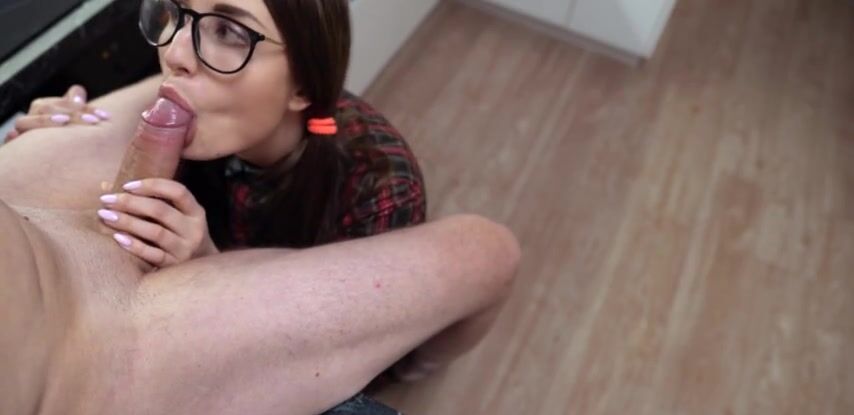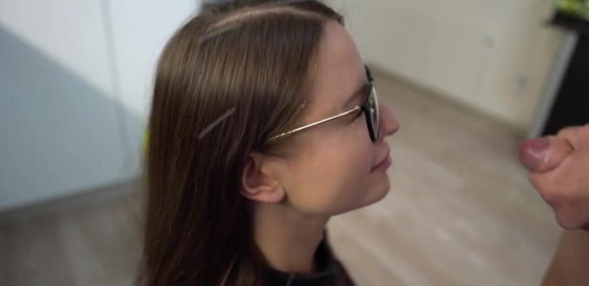 Соседка-студентка зашла отсосать член, пока жены нет дома и с радостью дала кончить на очки.