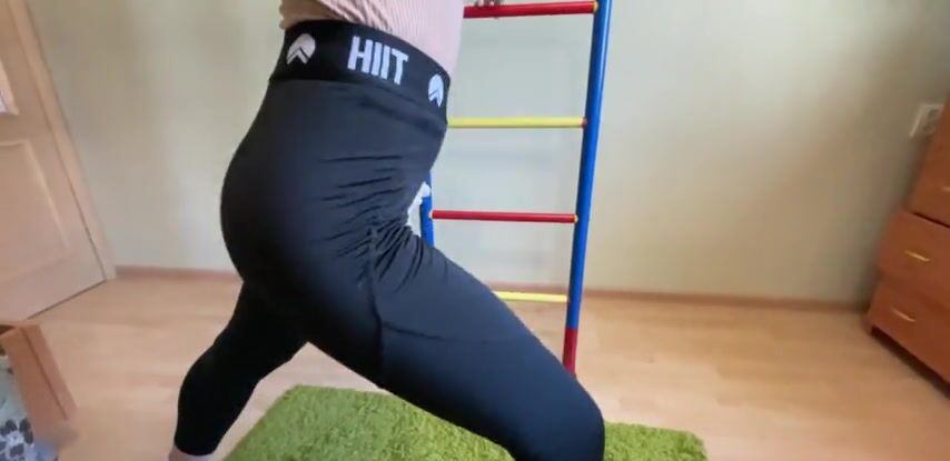 Русская девушка разминала свою классную попку во время домашних упражнений и случайно соблазнила парня на секс.