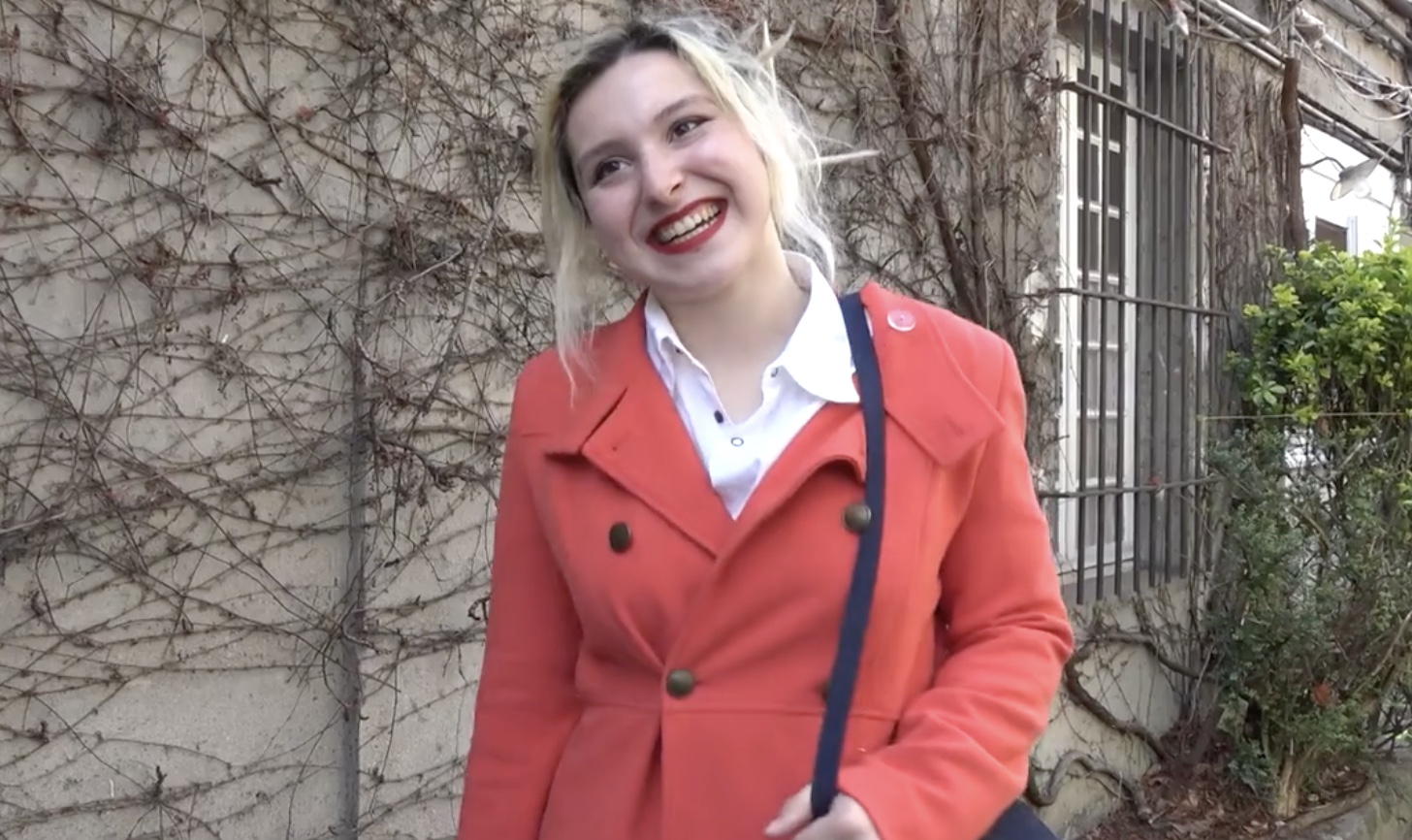 19 летняя студентка из Парижа разговаривает с незнакомцем