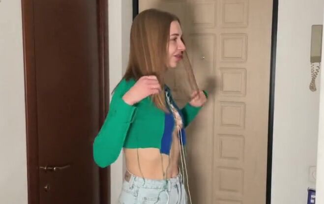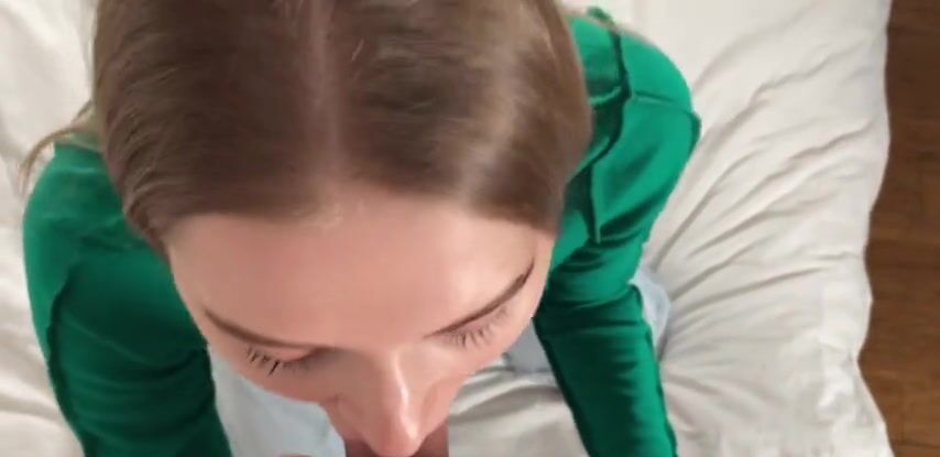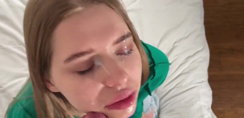 Русская милашка зашла в гости к чужому парню, отсосала ему и приняла сперму на лицо.