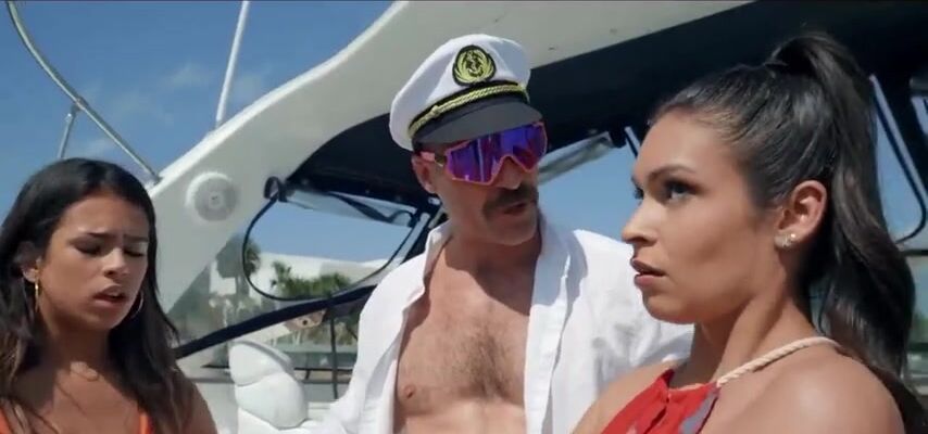 Две подруги развлекаются с усатым папиком