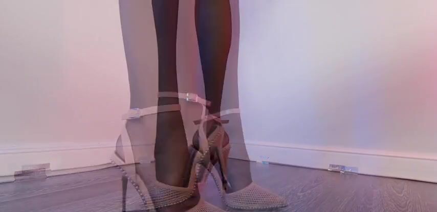 Студентка-шлюшка в чулках и туфлях трахает киску большим дилдаком