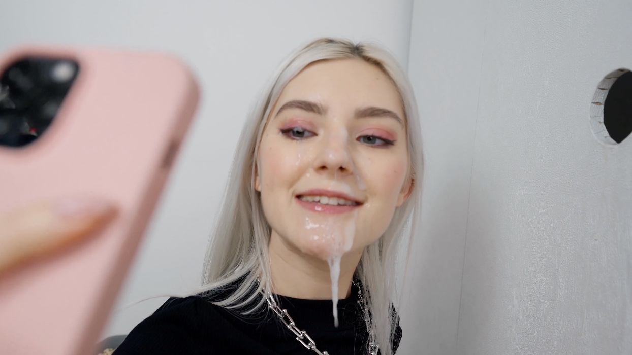 Отсосала член из дырки и сделала селфи со спермой на лице для страницы в Инстаграме