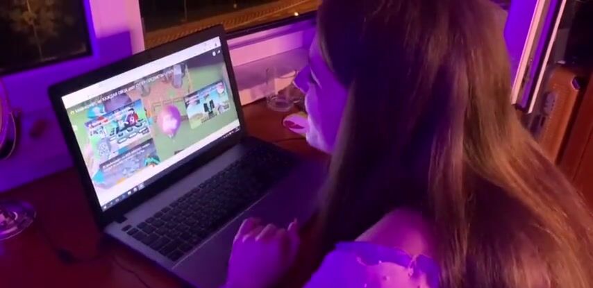 Мужик трахает свою девушку, пока она сидит за компом