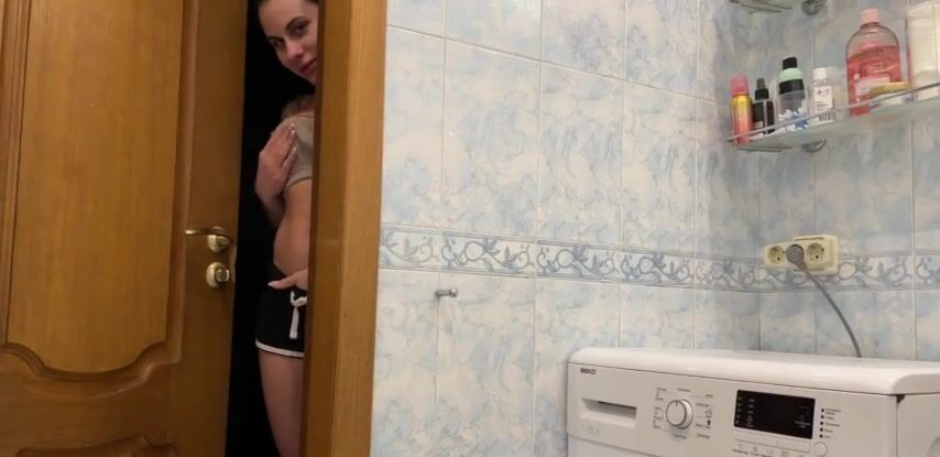 Сводная сестра подглядывает, как парень принимает ванную