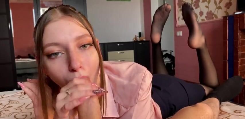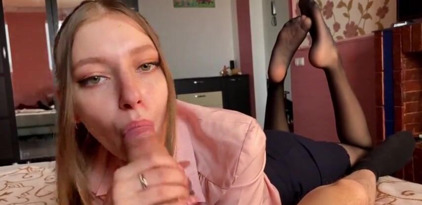 Русская студентка заходит к другу домой, чтобы пососать его кривой член