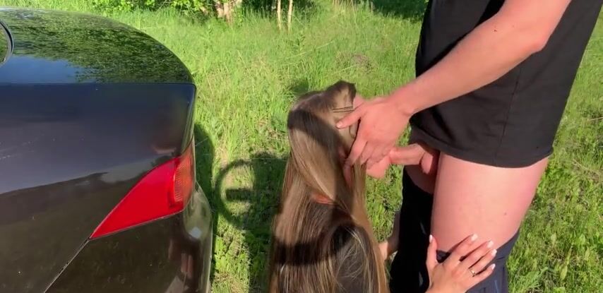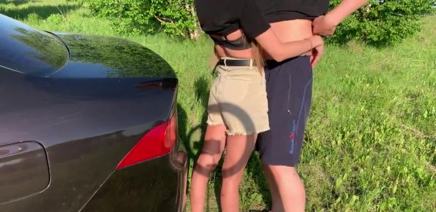 Трахнул девушку на природе и кончил ей в трусики