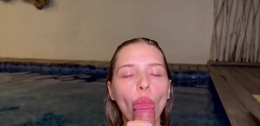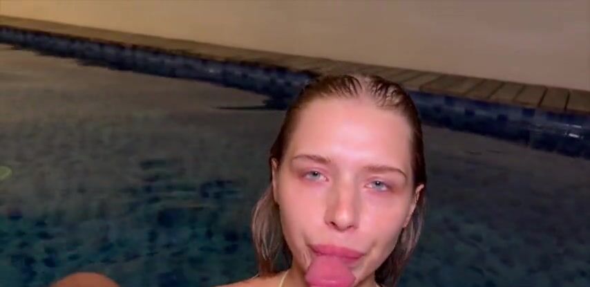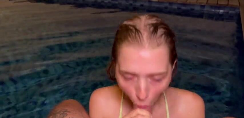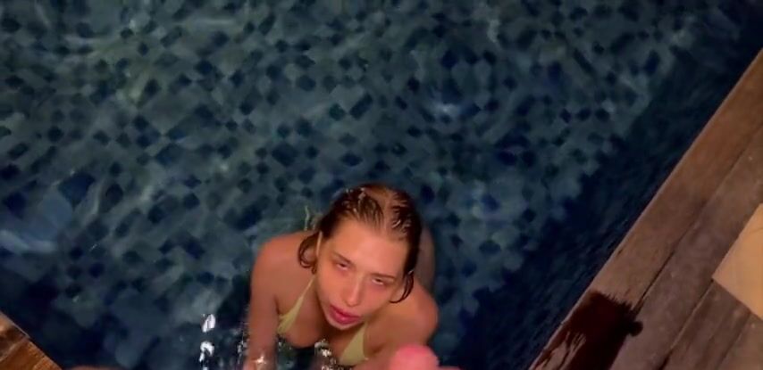 Симпатичная подруга соблазнила парня на минет в бассейне
