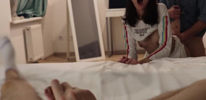Сосед кончает в молодую жену, а куколд дрочит на это