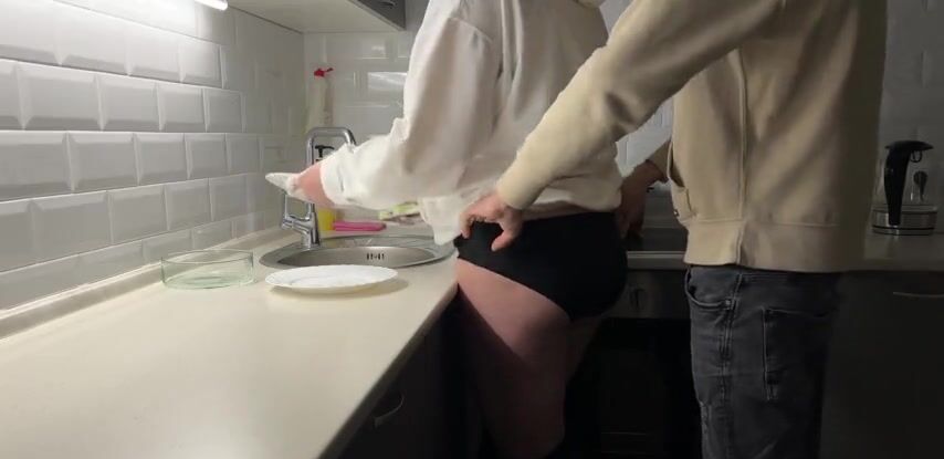 Девушка с пышной попой захотела быстрого секса на кухне