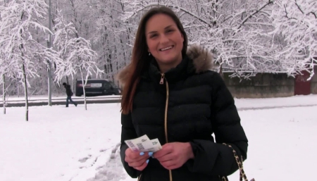 Ранним зимним утром мужчина встретил на улице симпатичную студентку и сразу же стал уговаривать ее на секс за денежное вознаграждение. За небольшую сумму телочка задрала маячку и показала груди, затем спустила черные ласины и показала выбритую письку. После того как перец дал ей еще несколько тысяч, шлюшка согласилась потрахаться перед камерой. Недолго думая парочка зашла в ближайший подъезд, там девушка оголилась и отсосала мужчине член. Далее сучка подстелила на лестницу куртку, раздвинула длинные ножки и отдалась в киску как самая последняя шлюшка. Потрахавшись, счастливая самка наделась и пошла на занятия в колледж.