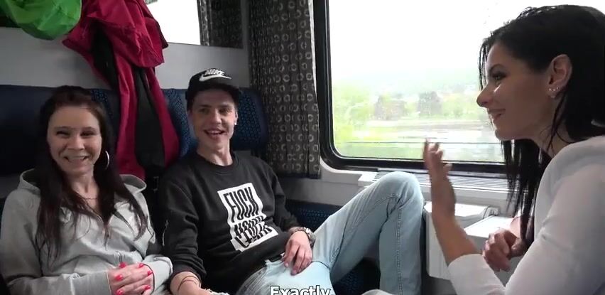 Симпотная чешская брюнетка вместе со своим парнем частенько ищут других пар которым можно просто заплатить денег за секс с ними. Их это очень возбуждает, а сегодня они вломали парня с девушкой потрахаться прямо в поезде.