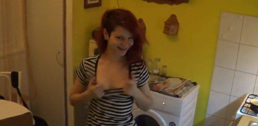 Парень постоянно снимает свою рыженькую красотку на камеру что бы она не делала, а еще ему нравится снимать её полностью голенькую, заставляет лакаться на камеру и не стесняется трахаться с ней, а потом смотреть на себя.